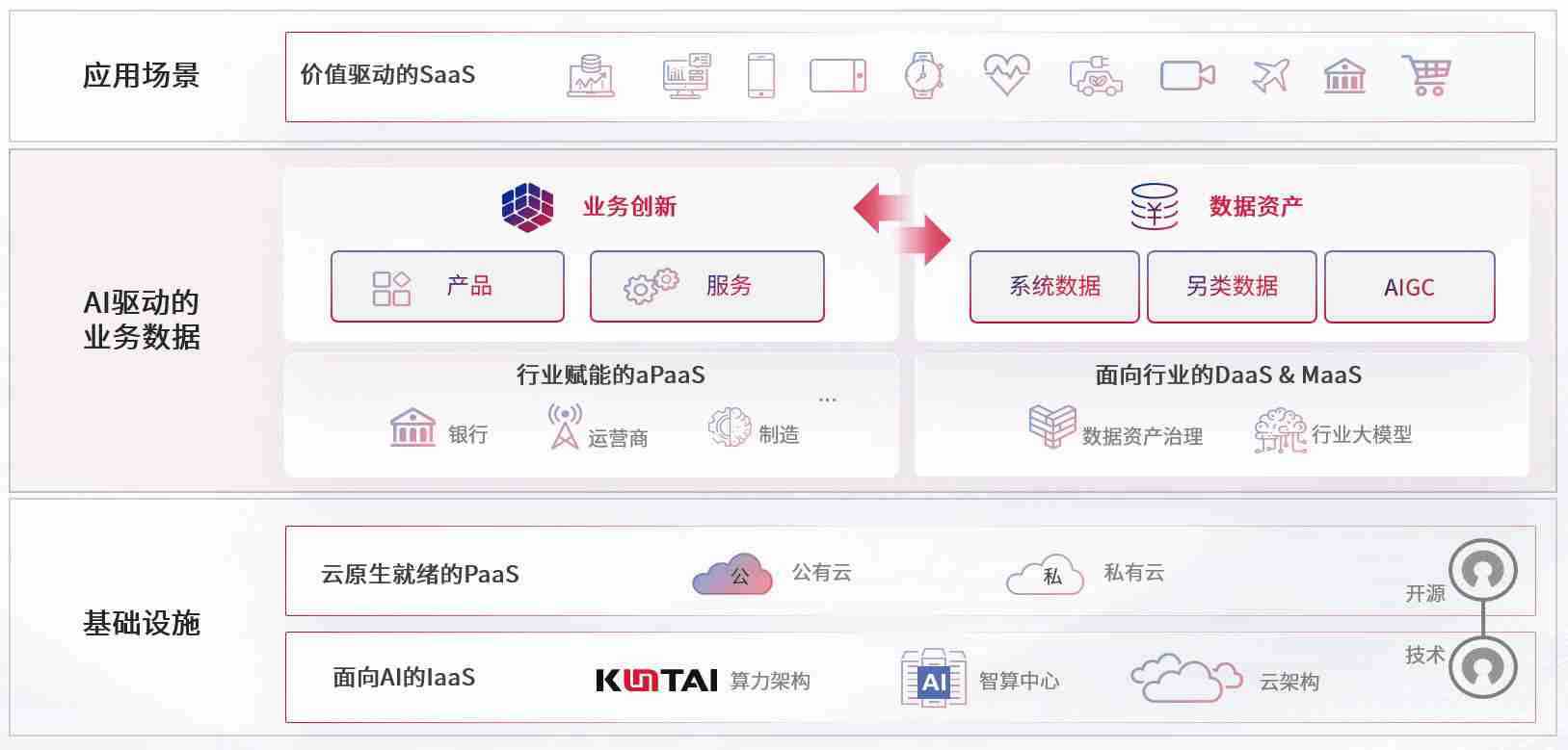 数字时代,,,,围绕企业数字化转型的关键要素,,,,来利国际旗舰厅数码开创性的提出数云融合战略和技术体系框架,,,着力在云原生、、数字原生、、AI原生和信创产业上架构产品和服务能力,,,为处在不同数字化转型阶段的快消零售、、、、汽车、、金融、、、医疗、、、政企、、教育、、运营商等行业客户提供泛在的敏捷IT能力和融合的数据驱动能力,,构建跨界融合创新的数字业务场景和新业务模式,,,,助力企业级客户建立面向未来的核心能力和竞争优势,,,全面推动社会的数字化、、、、智能化转型升级。。